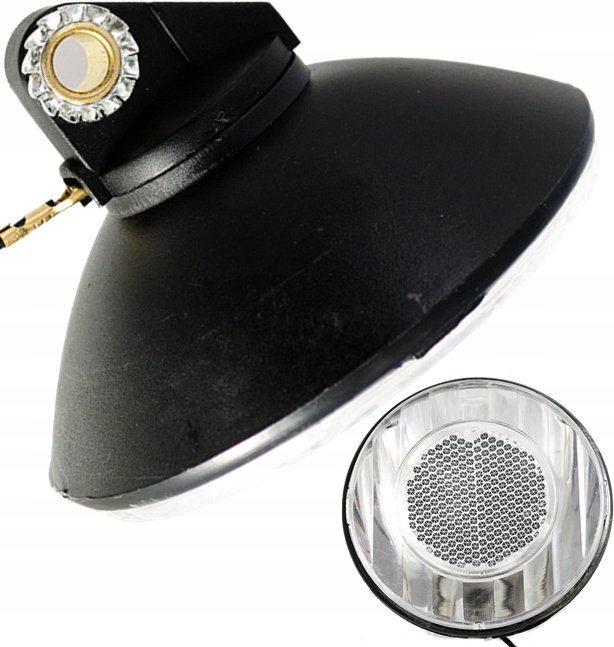 Lampa żarówkowa na dynamo z kloszem rozpraszającym światło.