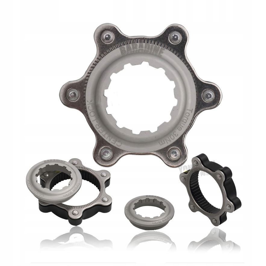 Adapter który pozwala zamontować tarczę w systemie 6 śrub na piastę w systemie CENTERLOCK.