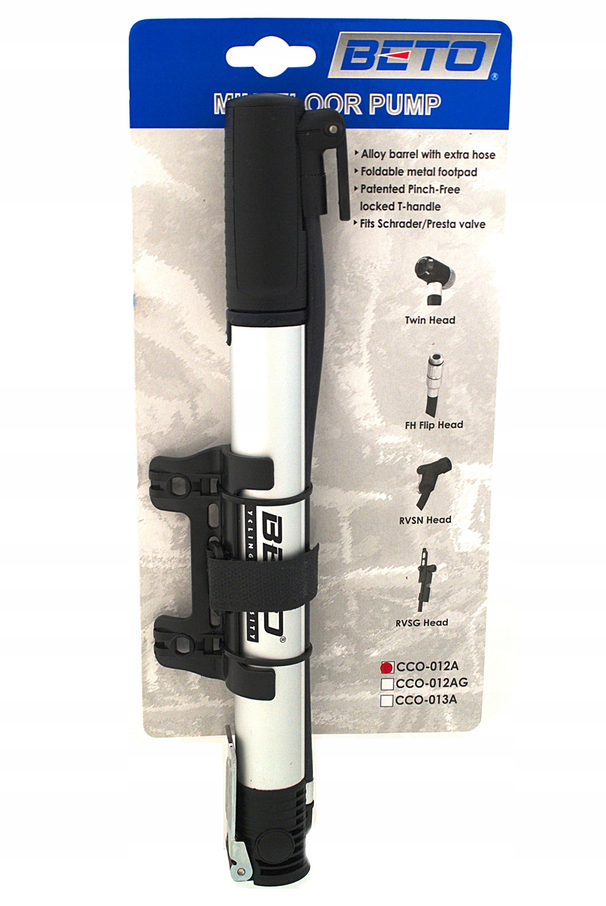 BETO CCO-012A to aluminiowa rozkładana. Możemy jej użyć jako normalnej pompki ręcznej i jako pompki nożnej, dzięki rozkładanej nóżce i uchwytowi typu T.