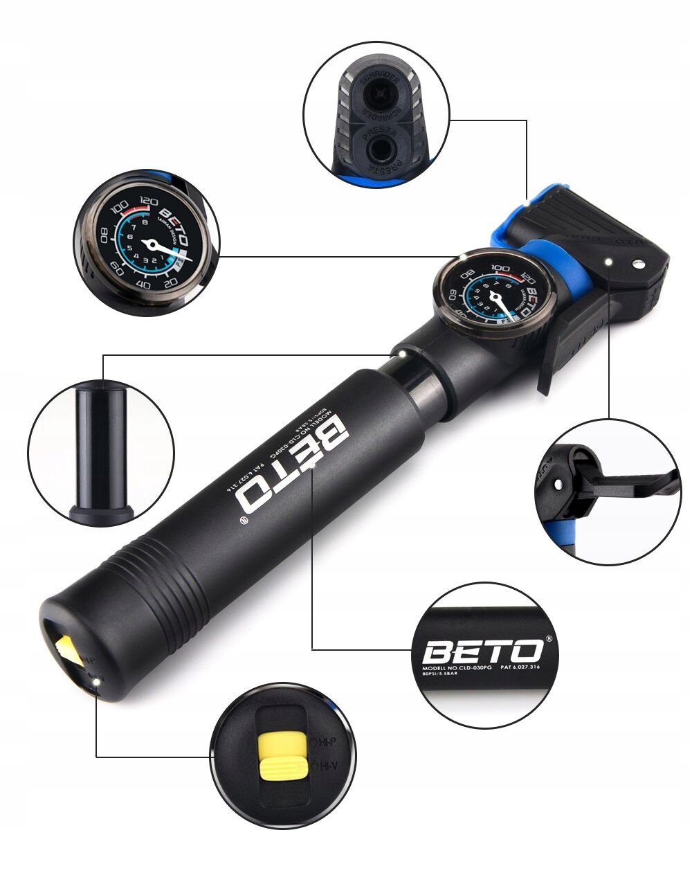 BETO CLD030PG to pompka wyposażona w czytelny manometr zegarowy oraz funkcję 2 trybów pompowania. Duża objętość/Wysokie ciśnienie. Dzięki tym funkcjom, pompowanie jest znacznie szybsze i łatwiejsze, w szczególności przy wysokim ciśnieniu.