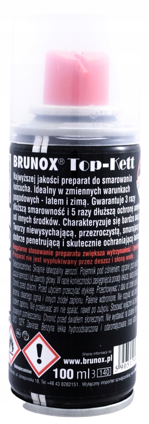 Brunox® Top-Kett 100ml w sprayu to wysokiej jakości, specjalistyczny preparat do czyszczenia, smarowania i konserwacji łańcuchów napędowych i przerzutek.