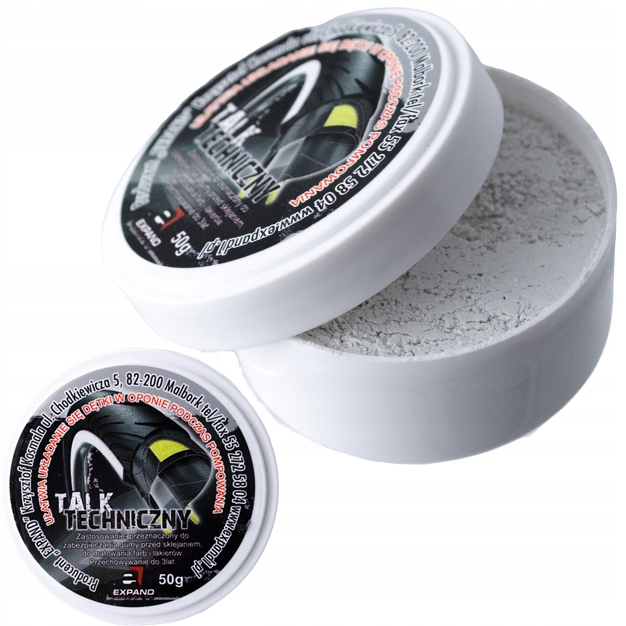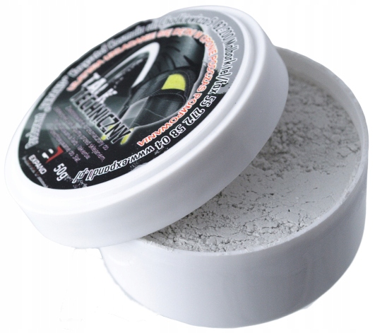 Talk ułatwia bezpiecznie układanie się dętki w oponie w czasie pompowania. Powszechnie używany jest do zapobiegania łączenia się gum np. dętki do opony. Znajduje zastosowanie również przy matowaniu farb i lakierów. Konserwuje przechowywane produkty zawierające lateksowe jak i gumowe elementy uszczelniające. Talk jest w postaci stałego pudru co gwarantuje łatwą aplikacje.