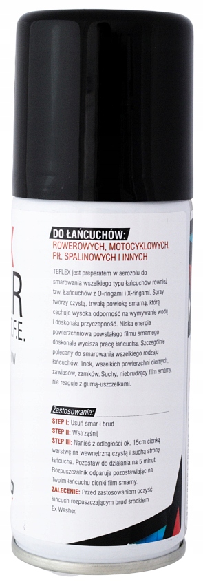 TEFLEX to preparat odznaczający się doskonałymi właściwościami smarnymi, które likwidują grzechotanie i skrzypienie ruchomych elementów. Jego formuła gwarantuje wysoką odporność na wymywanie wodą. Produkt jest szczególnie polecany do smarowania i konserwacji: