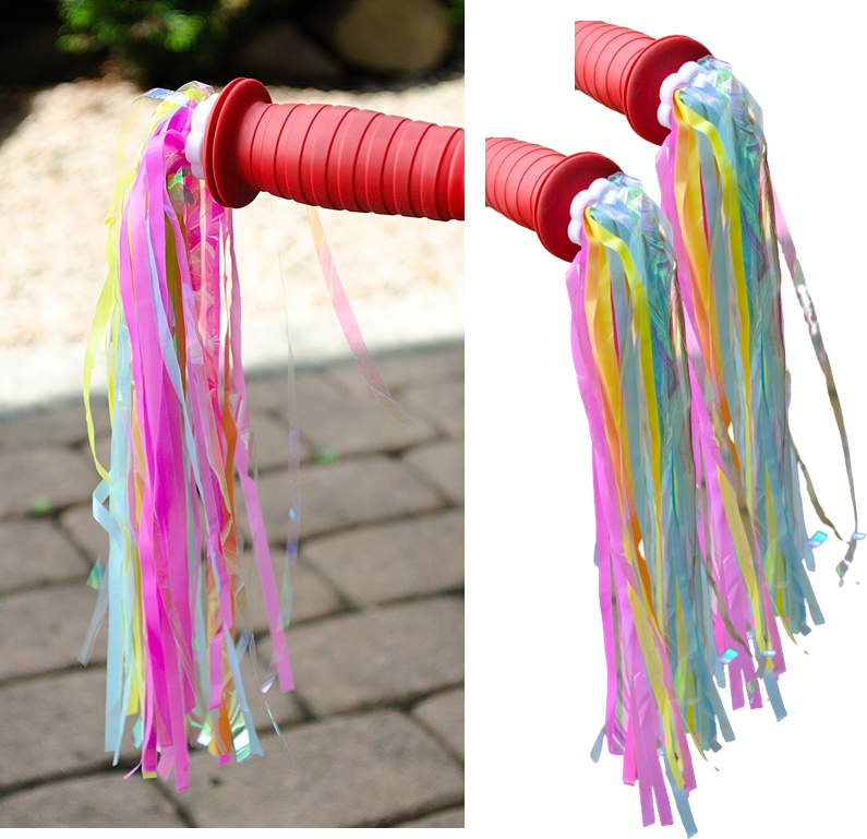 Kolorowe wstążki do kierownicy to idealny element dekoracyjny rowerka lub hulajnogi małej dziewczynki.