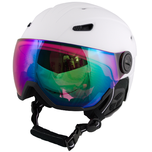 ✅ Kask wyposażony jest w ruchomą szybkę, która spełnia funkcję gogli.