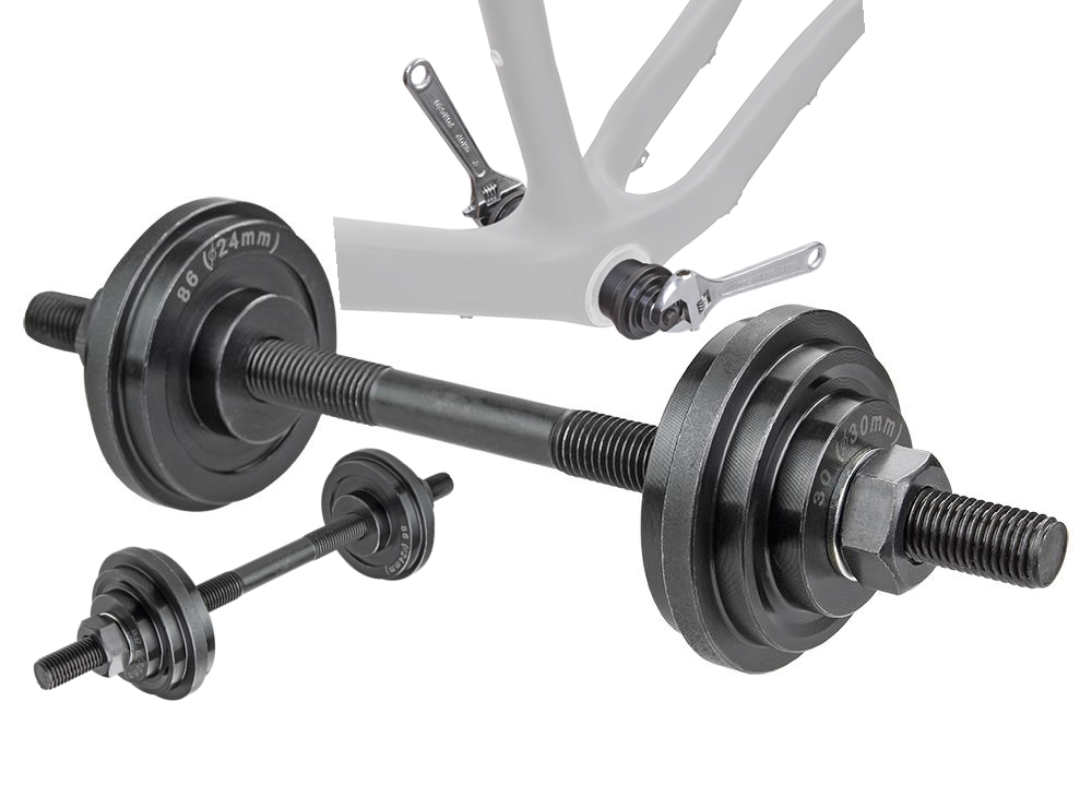 SuperB TB-19001 to narzędzie przeznaczone do montażu suportów typu Press Fit. Aby zamontować suport w ramie, należy wprasować go za pomocą narzędzia, dokręcając 2 śruby 17mm. Narzędzie pozwala bezpiecznie i łatwo zamontować suport, bez ryzyka uszkodzenia ramy i łożysk.
