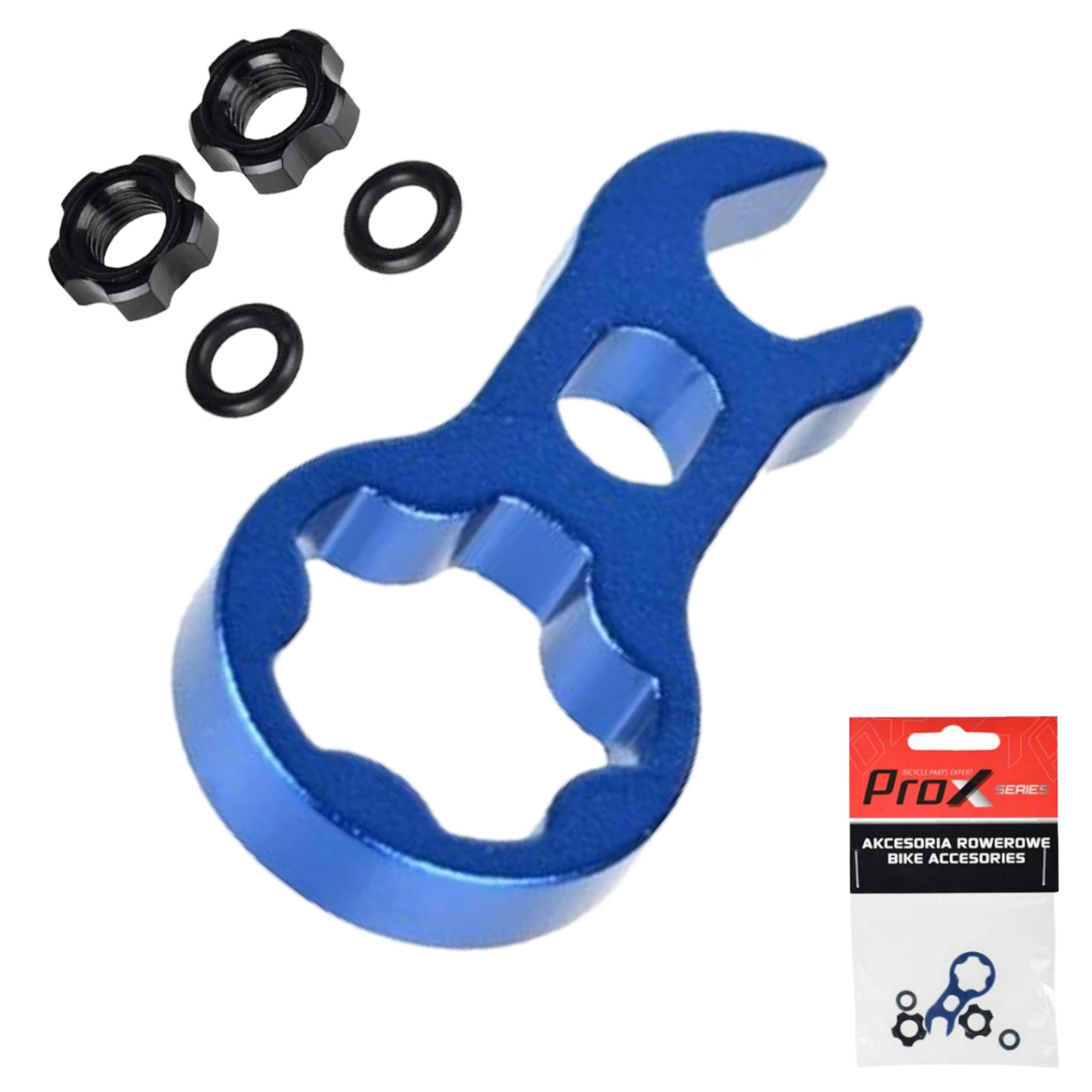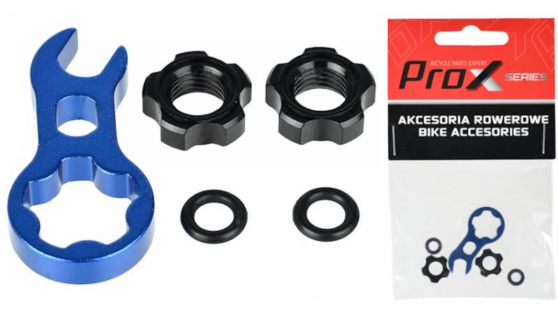 Zestaw do zaworów Presta FV marki PROX to kompaktowy kluczyk do obsługi wkładów wentyla rowerowego. Zawiera klucz do dokręcania wkładów oraz nakrętki z uszczelkami, które poprawiają szczelność i trwałość zaworu.