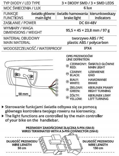 ✅ Lampka wyposażona jest w kierunkowskazy oraz światło STOP