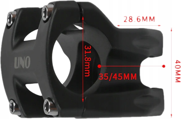 Wspornik kierownicy marki UNO, wykonany z kutego aluminium, co znacznie podnosi jego wytrzymałość. Dedykowany do kierownic o średnicy montażowej 31.8 mm.