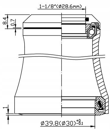 - Średnica widelca w miejscu nabijania dolnej bieżni łożysk: 39,75 mm