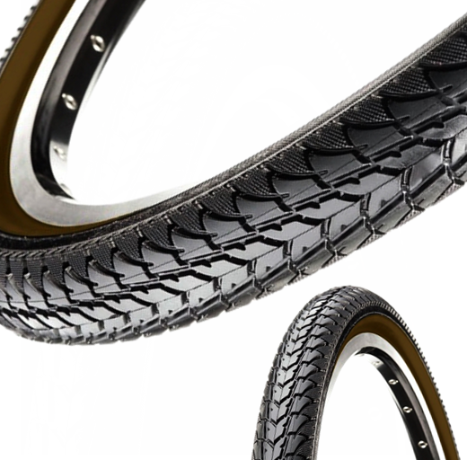 - Zastosowanie gładkiego bieżnika turystycznego, gwarantuje dobrą przyczepność i niskie opory toczenia, co przekłada się na komfort jazdy w trasie.