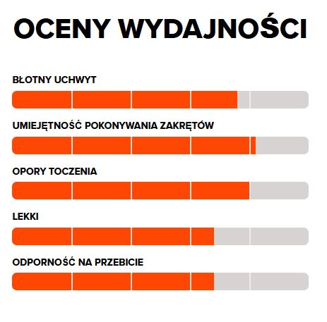 - Duża objętość opony zapewnia pewną przyczepność w terenie