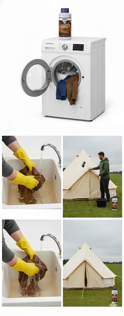 - W pralce: dodaj 50–150 ml do dozownika (w zależności od ilości odzieży), cykl syntetyczny 30°C.