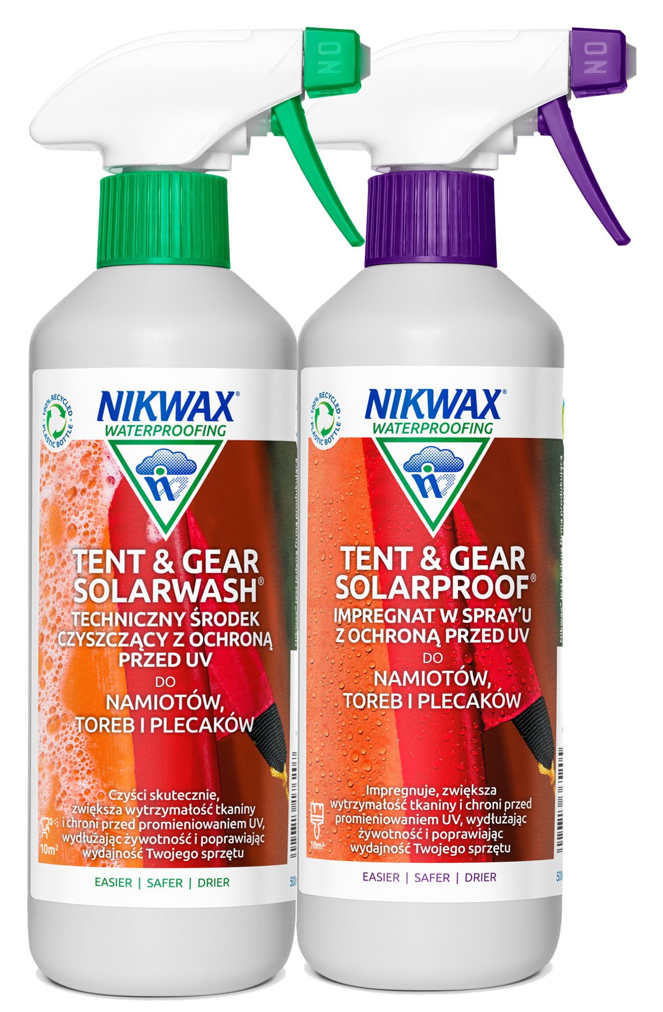 - Rodzaj produktu: dwupak: środek czyszczący Tent & Gear SolarWash i impregnat SolarProof
