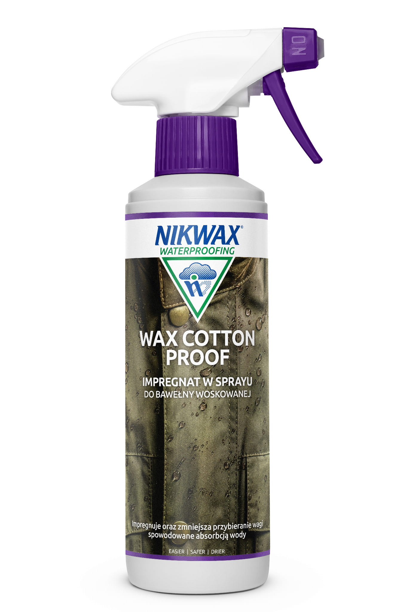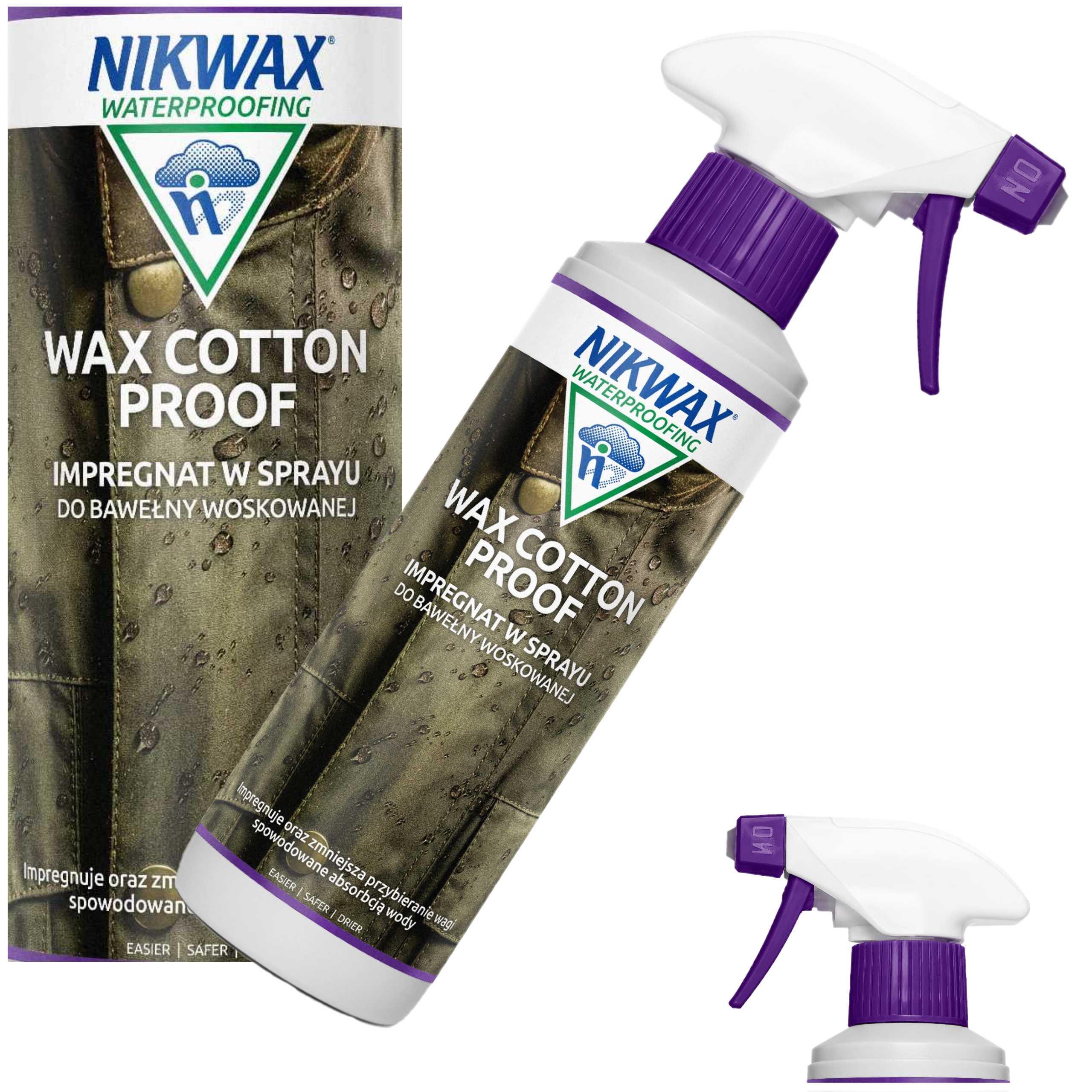 Impregnat w sprayu do bawełny woskowanej Nikwax Wax Cotton Proof 300ml przywraca wodoodporność, chroni i ożywia kolor odzieży oraz sprzętu – doskonały do kurtek Barbour, Belstaff i innych marek.