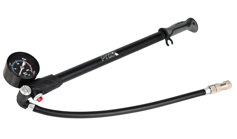 Wygodna pompka do amortyzatorów rowerowych z manometrem i regulatorem ciśnienia. Głowica AV/FV czyni ją uniwersalną, można nią pompować opony do ciśnienia 20 bar.