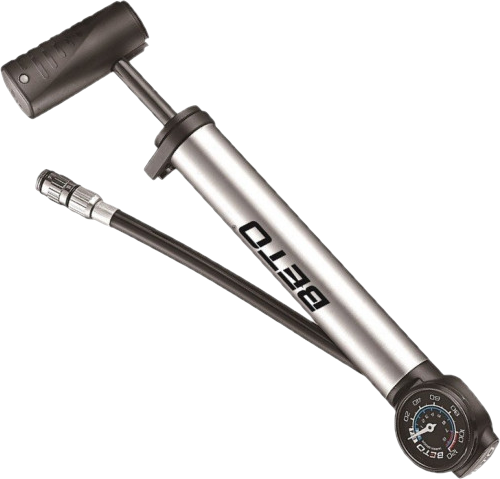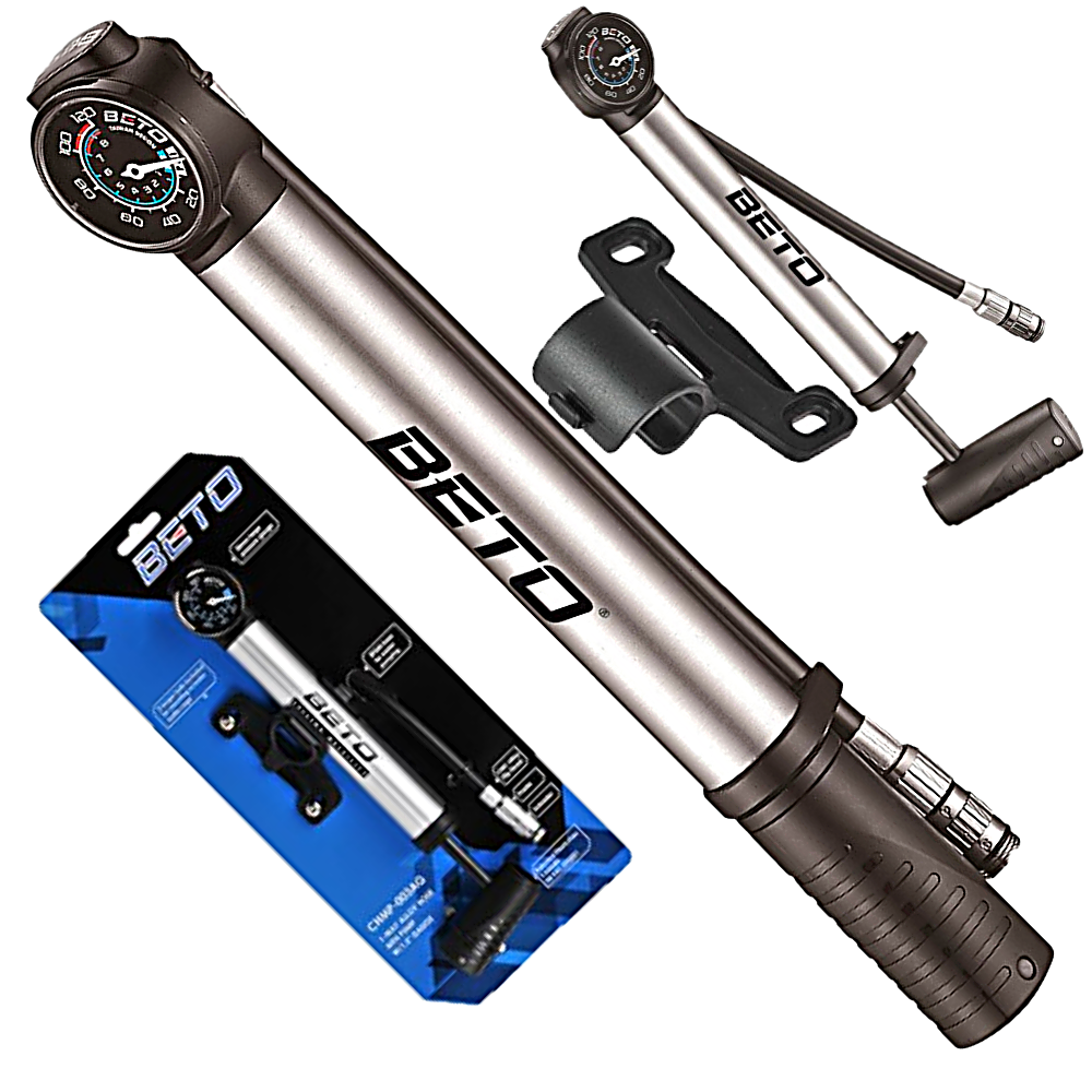 ✅ BETO CHMP-003AG to aluminiowa pompka wyposażona w czytelny manometr oraz wygodną składaną rączkę i wężyk.