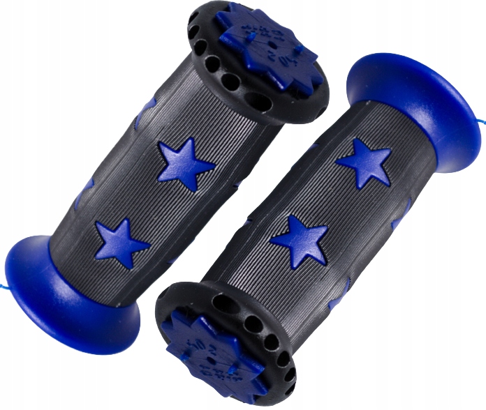 Chwyty mają bardzo ciekawy kształt i strukturę, dzięki czemu na pewno wpadną w oko Twojemu dziecku. Gumowy materiał, z którego są wykonane jest bardzo wygodny i zapewnia pewny chwyt i ułożenie rąk na kierownicy. Posiadają z obydwu stron ochraniacz, który zabezpiecza przed osunięciem się dłoni z kierownicy oraz przed otarciem. Pasują one do standardowej kierownicy o średnicy mocowania 22,2 mm.