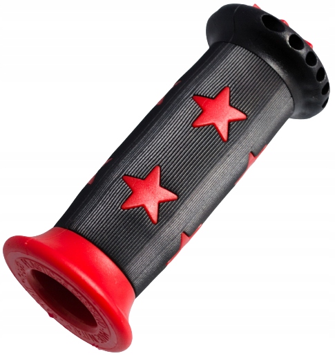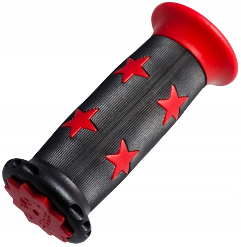 Chwyty mają bardzo ciekawy kształt i strukturę, dzięki czemu na pewno wpadną w oko Twojemu dziecku. Gumowy materiał, z którego są wykonane jest bardzo wygodny i zapewnia pewny chwyt i ułożenie rąk na kierownicy. Posiadają z obydwu stron ochraniacz, który zabezpiecza przed osunięciem się dłoni z kierownicy oraz przed otarciem. Pasują one do standardowej kierownicy o średnicy mocowania 22,2 mm.