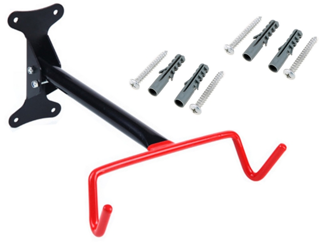 Wytrzymały, składany wieszak na rower, pozwalający zachować porządek w garażu lub piwnicy. Umożliwia wygodny montaż roweru na ścianie, oszczędzając miejsce w pomieszczeniu. Możliwość złożenia wieszaka, pozwala wygospodarować dodatkowe miejsce, w momencie gdy korzystamy z roweru.