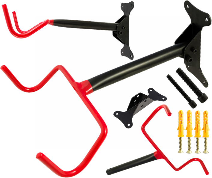 Wieszak służy do powieszenia roweru za górną rurę ramy. Przydatny wszędzie tam, gdzie mamy niewiele miejsca, a chcemy zachować porządek. Składany, przez co po zdjęciu roweru nie przeszkadza i nie zawadza. Miejsca kontaktu z ramą wyłożone gumową osłoną, chroniącą przed porysowaniem ramy. Nasz uchwyt montowany jest na 4 kołki oraz 2 śruby zabezpieczające dzięki czemu jest zdecydowanie bardziej wytrzymały oraz trwalszy od innych dostępnych na rynku wieszaków.