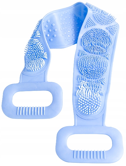 Silikonowa, dwustronna myjka do zmywania i masażu pleców. Wyposażona w specjalne, zróżnicowane wypustki masujące z obu stron myjki. Dwustronny uchwyt ułatwia masowanie oraz mycie pleców. Produkt wykonany został z tworzywa bezpiecznego dla skóry. Myjkę można sterylizować w przegotowanej wodzie oraz myć w zmywarce.