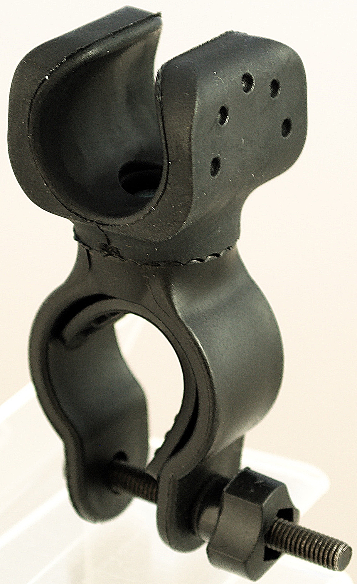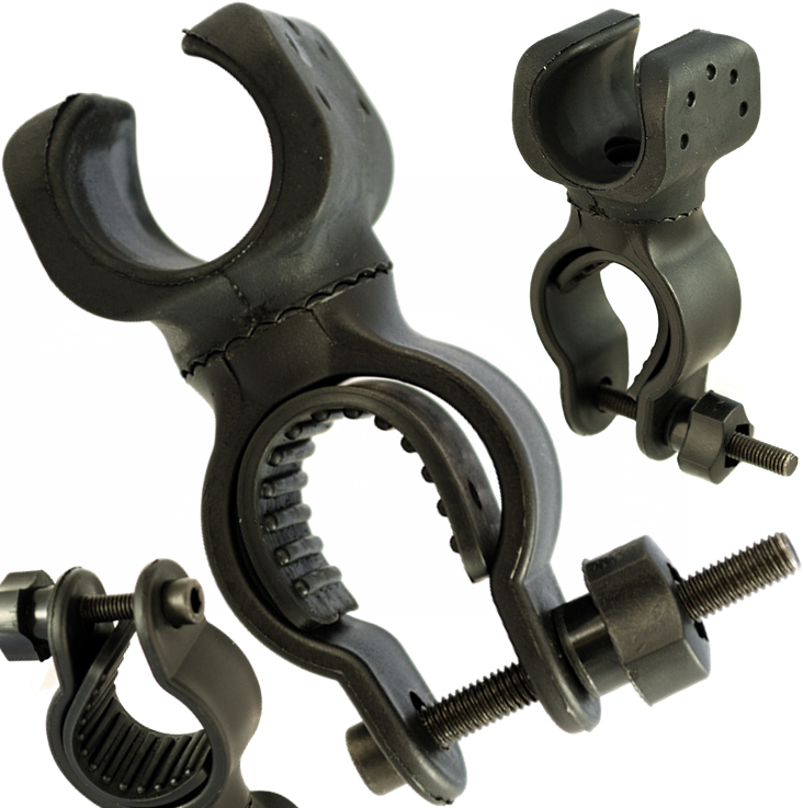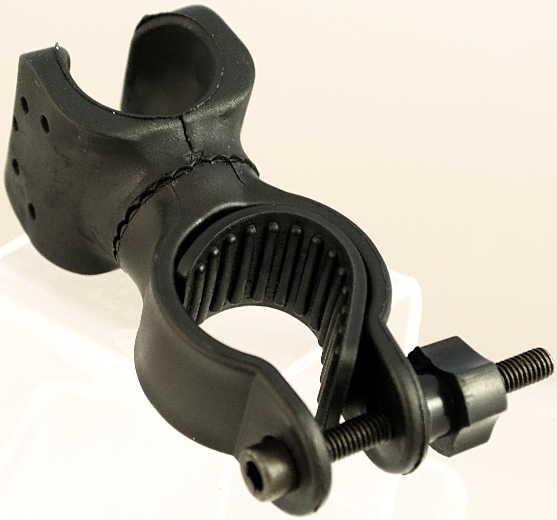 Uniwersalny, obrotowy uchwyt na rower / motocykl / skuter, przeznaczony do montażu latarki bądź lampki.