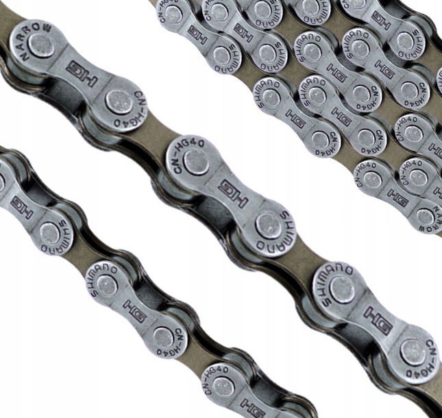 Łańcuch o symbolu HG40 z grupy ALIVIO, przeznaczony jest do rowerów z napędem 6, 7, lub 8 rzędowym. Wykonany jest ze stali wysokiej jakości i posiada pin do łączenia w komplecie.