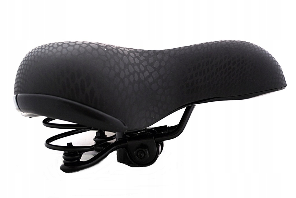 Komfortowe siodełko, dedykowane do rowerów miejskich. Wygodę podróżowania zapewniają sprężyny amortyzujące nierówności na drodze, oraz gęsta pianka którą siodełko jest wypełnione.