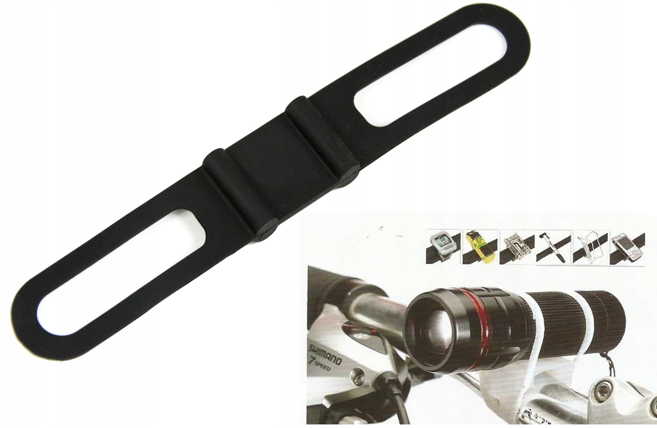 Uchwyt marki SPENCER, do mocowania lamki rowerowej na kierownicy. Produkt wykonany jest z elastycznego silikonu. Pozwala zamontować dowolny przedmiot na kierownicy roweru.