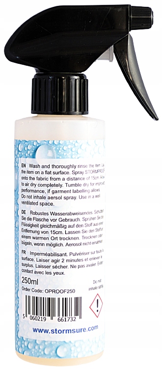 Jeśli twoja odzież wodoodporna „wilgotnieje” i staje się nieprzyjemna w trakcie noszenia w złych warunkach atmosferycznych, nie oznacza, że musisz kupić nową kurtkę. Dzięki specjalnym preparatom z linii Stormproof można z łatwością zregenerować powłokę hydrofobową, a odzież ponownie stanie się wodoodporna, jak w oryginalne. Wystarczy oczyścić (wypłukać w czystej wodzie) wymaganą powierzchnię, a następnie zastosować preparat StormProof i pozostawić do czasu wyschnięcia. Ponadto, delikatne podgrzewanie lub suszenie mechaniczne poprawi odporność gotowej powłoki.