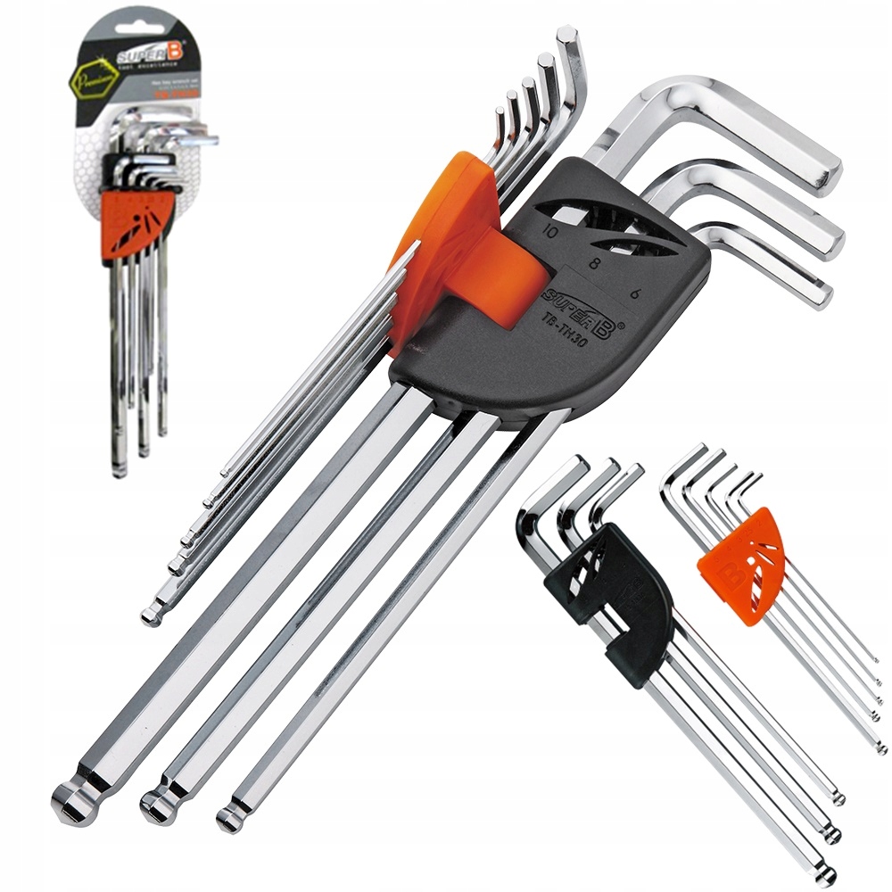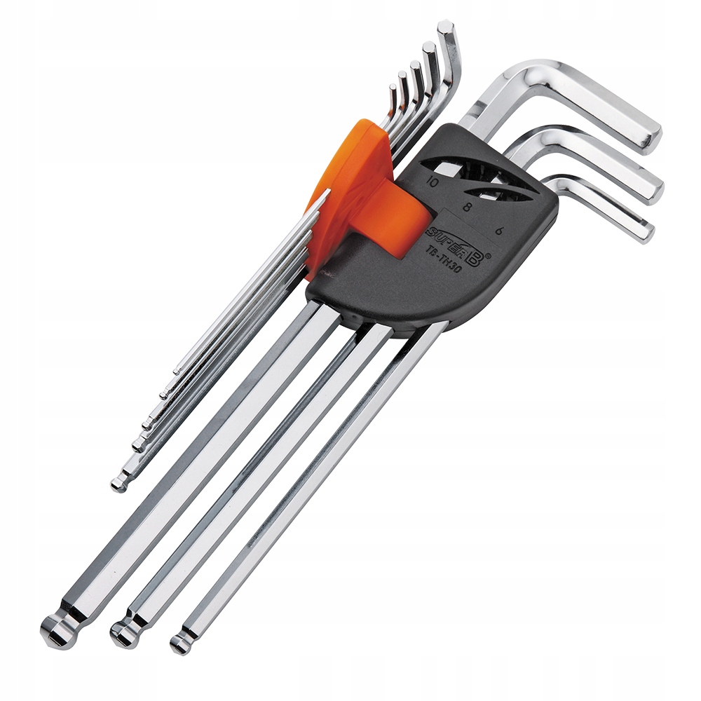 SuperB TBTH30 Zestaw kluczy imbusowych 8 elementów. Wykonany z wytrzymałej stali narzędziowej. Krótki koniec kluczy został przyszlifowany na kształt diamentu w taki sposób by praca tym narzędziem stała się przyjemniejszą.