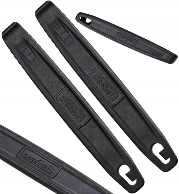 SuperB zestaw 2 łyżek do zdejmowania opon rowerowych, wykonanych z wzmacnianego nylonu. Gładkie i delikatne krawędzie minimalizują ryzyko uszkodzenia obręczy w trakcie ściągania opony. Dzięki długiej dźwigni można za ich pomocą zdemontować nawet najciaśniej przylegające opony.