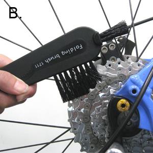 - Składana szczotka znajdująca się w zestawie, pomoże wyczyścić kasetę i przerzutkę.