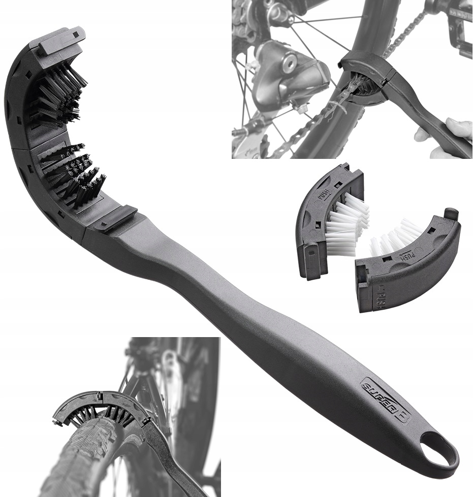 Bardzo wydajny przyrząd do czyszczenia roweru marki SuperB, przeznaczony do pielęgnacji. Odczepiane wymienne szczotki wykonane z twardego włókna (czarne) lub miękkiego (białe), dogłębnie wyczyszczą nawet bardzo zabrudzone elementy roweru.