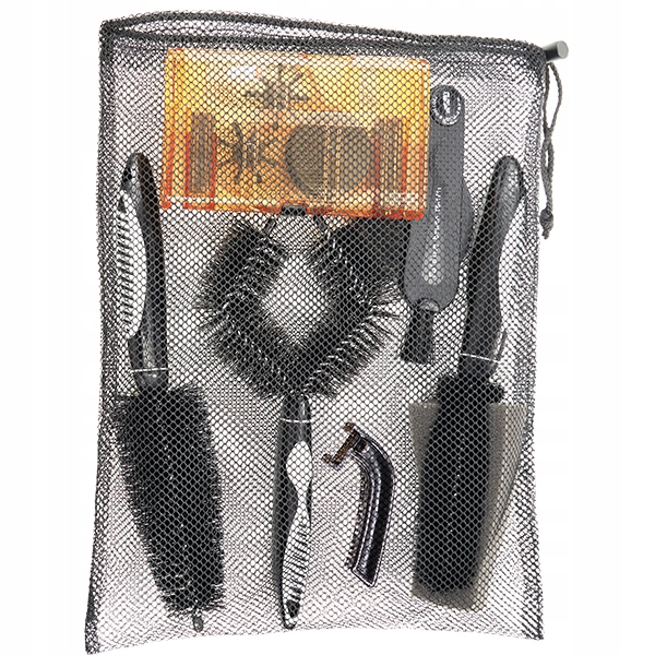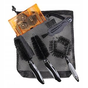 SuperB zestaw szczotek do kompleksowego czyszczenia roweru łącznie z napędem. Wyposażony jest w przyrząd do czyszczenia łańcucha, szczotkę do napędu, szczotkę do ram, szczotkę do kół i szczotkę wielofunkcyjną