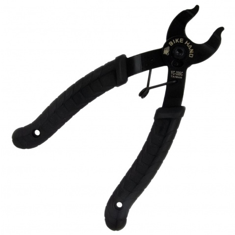YC335C to narzędzie przeznaczone do spinania spinek łańcucha rowerowego, łączonego za pomocą spinki. Zapinamy łańcuch ściskając szczypce. Dodatkowo szczypce pomagają utrzymać rozpięty łańcuch, tak aby nie spadał z napędu.