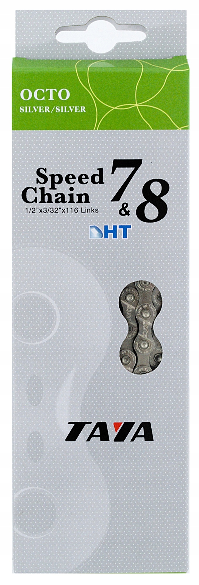 - Łańcuch marki TAYA przeznaczony do rowerów z napędem 7 i 8-rzędowym.