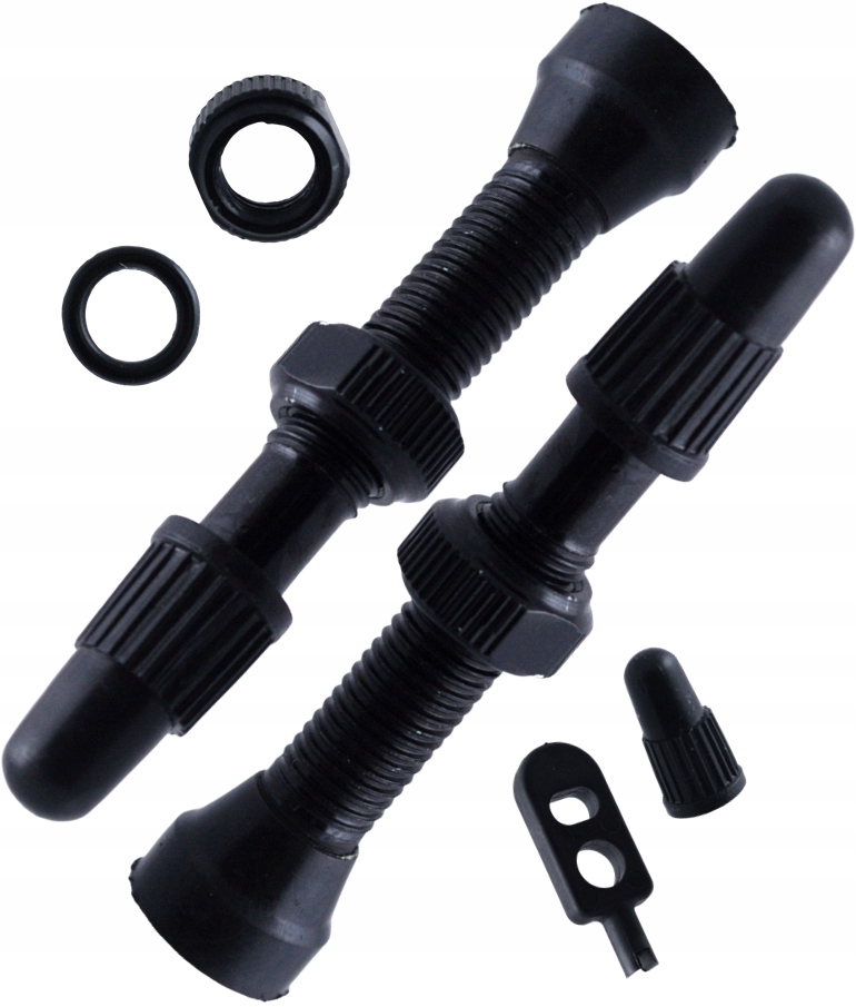 - Dwa zawory do zestawu uszczelniającego Tubeless Ready wraz z wkładami i kluczykiem