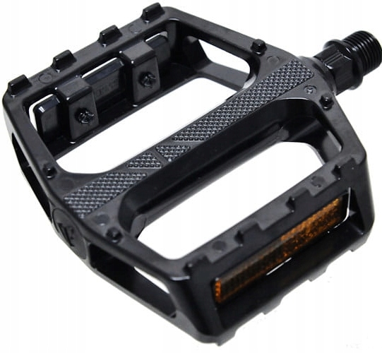 Aluminiowe pedały marki VP o niskim profilu, wyposażone w nowoczesne łożyska polimerowe EBP.