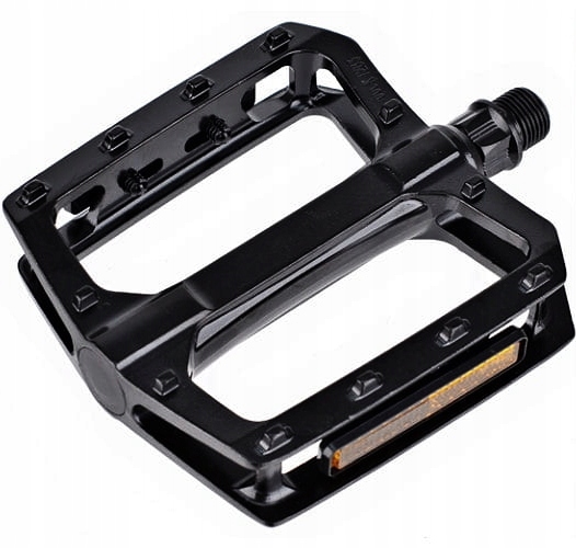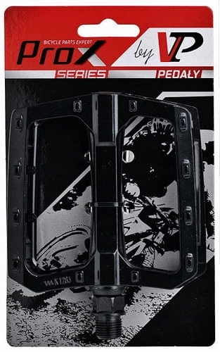 Aluminiowe pedały marki VP o niskim profilu, wyposażone w nowoczesne łożyska polimerowe EBP.
