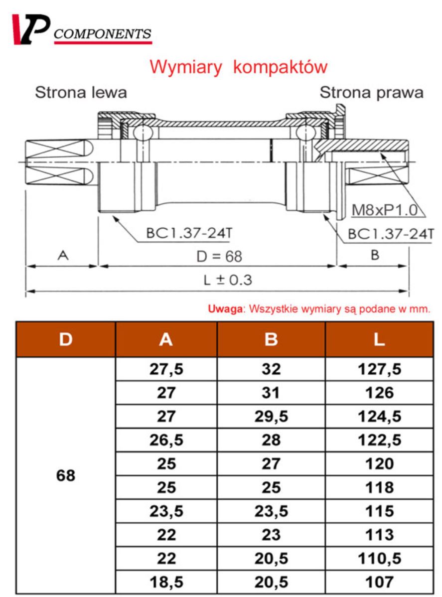 - W zestawie: Wkład suportu VP, 2 miski, 2 śruby mechanizmu