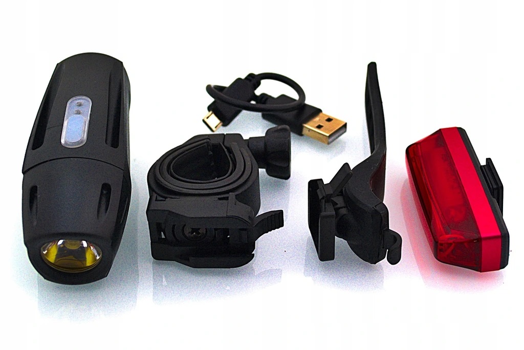 Zestaw Lampek rowerowych XC ładowanych za pomocą kabla USB.