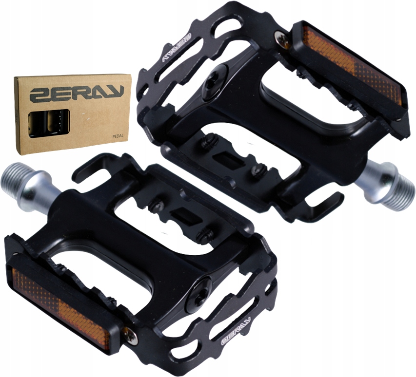 ZERAY 975A to pedały z aluminiowym korpusem w kolorze czarnym i czarną ramką.